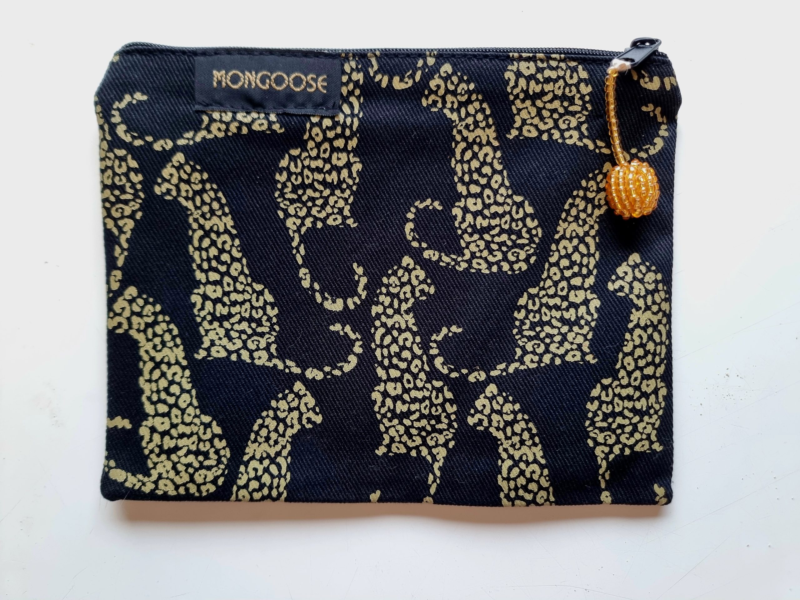 Laadukkaat pussukat upeilla kuoseilla valmistetaan Etelä-Afrikassa. Valitse mieleisesi viiden upean kuosin joukosta. Vetoketjukiinnitys, jossa kaunis helmikoristeltu vedin. Pussukka soveltuu monenlaiseen säilytykseen. Koko 15 x 18 cm. Valmistaja: Mongoose, South Africa.